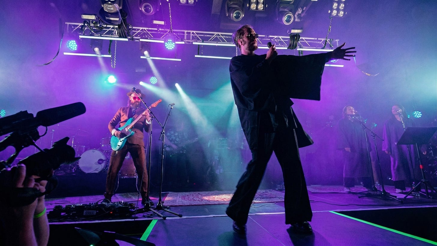 While the title track is a brass-heavy riot and “Karma Supernova” offers the kind of sprawling prog epic that makes listeners feel like they’ve survived a marathon, “Showbiz” is undeniably the album’s centerpiece. It is the perfect bridge between the two chapters: it retains the infectious 80s synth hooks of Velvet Prison but injects them with the raw, live-wire theatricality that defines the band’s best work. It possesses a melody so sharp it could cut through a major label record contract. It’s accessible enough to hum, yet weird enough to make you look over your shoulder while doing so. Jon Ivar Kollbotn’s gravelly, “street-preacher” vocals perfectly sell the song’s cynical take on fame. It feels like a mythology of celebrity viewed through the bottom of a chipped whiskey glass. The track doesn’t just end; it evolves. The callbacks to earlier motifs (like the “Show me the killer” refrain) reward the dedicated fan while the “Apocalypse Choir” elevates the whole affair into a grand, dark-pop spectacle.
